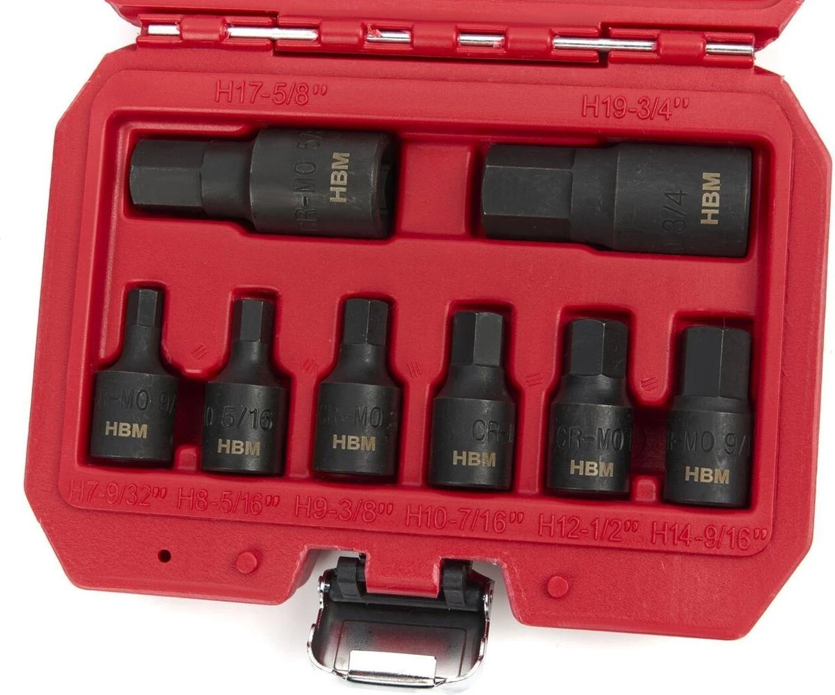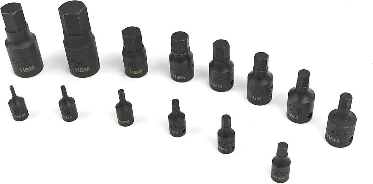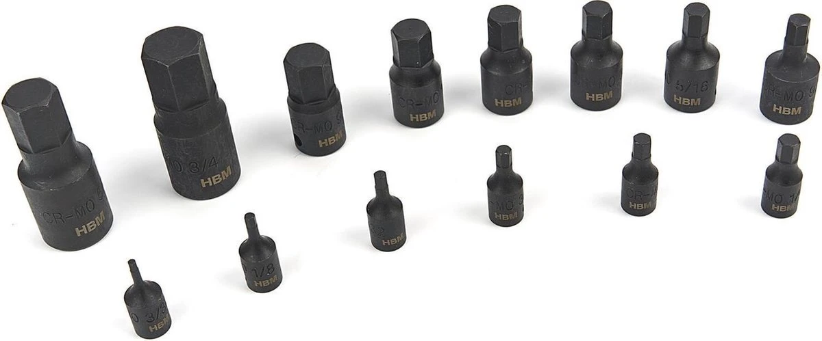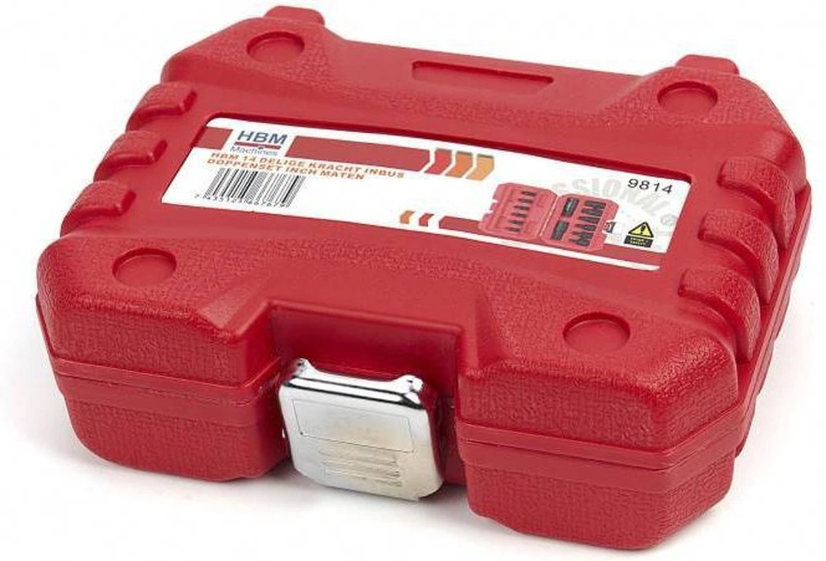 Een echte aanvulling voor elke sleutelaar zowel hobbymatig als professioneel. Met deze inbus krachtdoppenset kunt u inbusbouten losmaken met luchtgereedschap of slagmoersleutels. De set is verpakt in een metalen opbergbox zodat u de set altijd overzichtelijk en compleet heeft. De dopsleutels zijn gefabriceerd uit een geheel van chroom-molybdeen. Deze uiterst slagvastecombinatie zorgt voor een lange levensduur en geen vervorming.