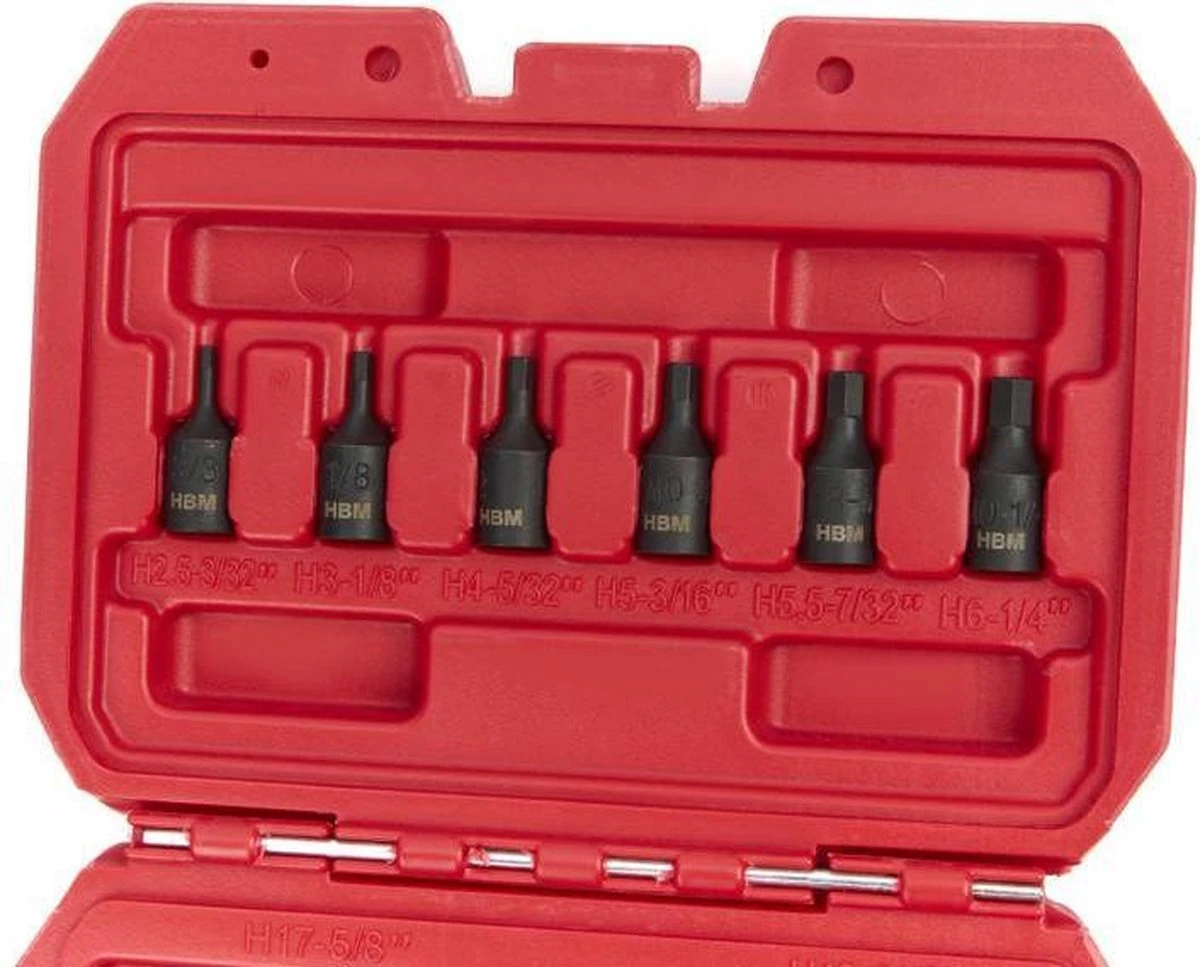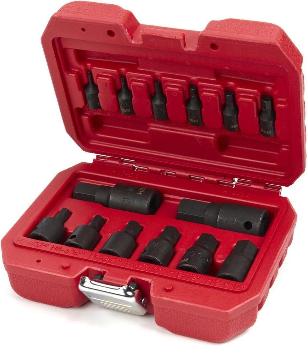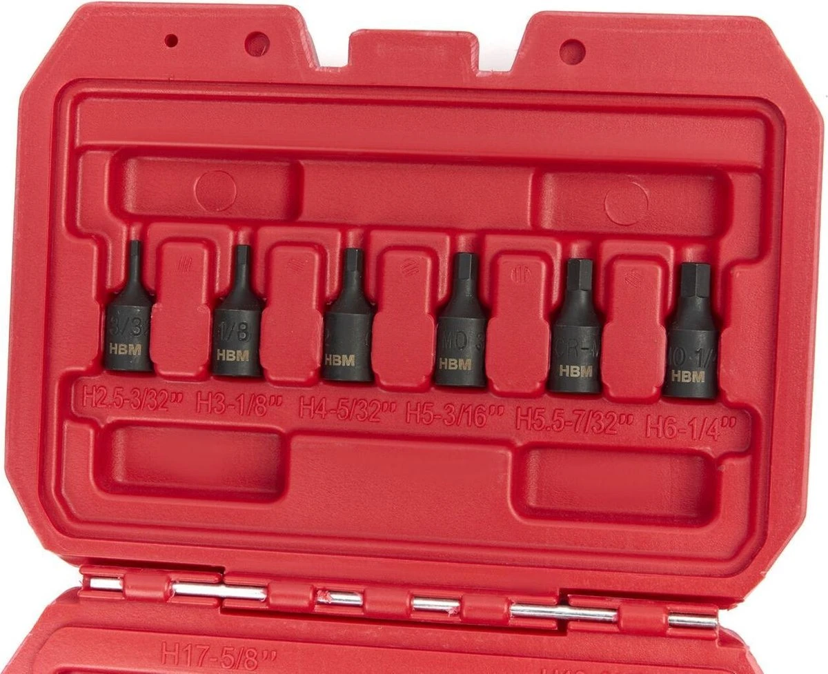 Een echte aanvulling voor elke sleutelaar zowel hobbymatig als professioneel. Met deze inbus krachtdoppenset kunt u inbusbouten losmaken met luchtgereedschap of slagmoersleutels. De set is verpakt in een metalen opbergbox zodat u de set altijd overzichtelijk en compleet heeft. De dopsleutels zijn gefabriceerd uit een geheel van chroom-molybdeen. Deze uiterst slagvastecombinatie zorgt voor een lange levensduur en geen vervorming.