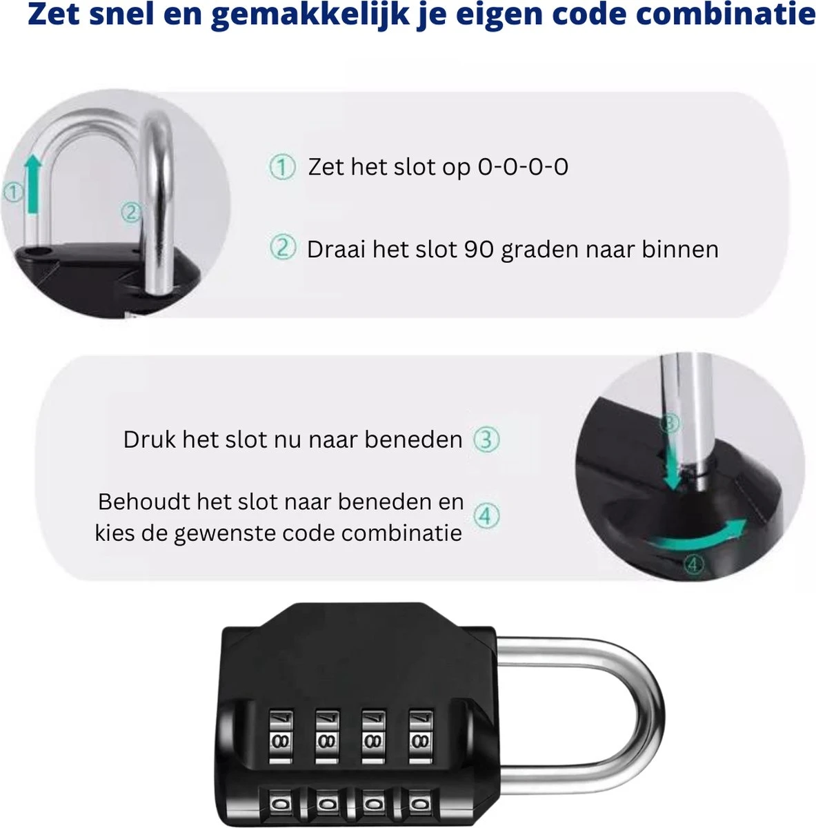 DUURZAAM MATERIAAL: Gemaakt van eersteklas materiaal van zinklegering, de lock locker is weerbestendig, antiroest, lichtgewicht, compact en kan niet door menselijke kracht worden verwijderd. GEMAKKELIJK TE GEBRUIKEN EN IN TE STELLEN: Met dit cijferslot is het eenvoudig om uw eigen combinatie in te stellen of te resetten met maximaal 10.000 verschillende variaties, met hoge veiligheid en moeilijk te kraken. Geen sleutels nodig.
