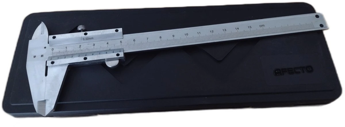 Deze analoge Afecto® schuifmaat van zware kwaliteit wordt geleverd in een handige opbergbox.