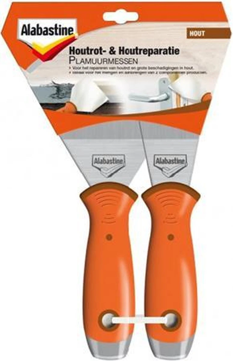 - Verpakking: set met 2 plamuurmessen (breed en smal)