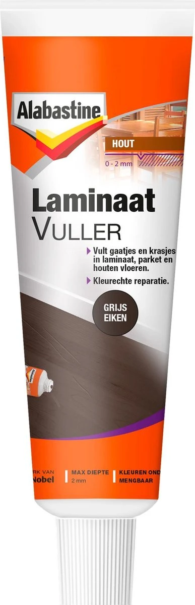 Als je gaatjes en krasjes in je laminaat hebt, wil je die zo onzichtbaar en kleurecht mogelijk vullen. Alabastine Laminaatvuller zorgt daarvoor. Dit product is verkrijgbaar in 6 kleuren die onderling mengbaar zijn. Zo krijg je altijd de perfecte kleur.