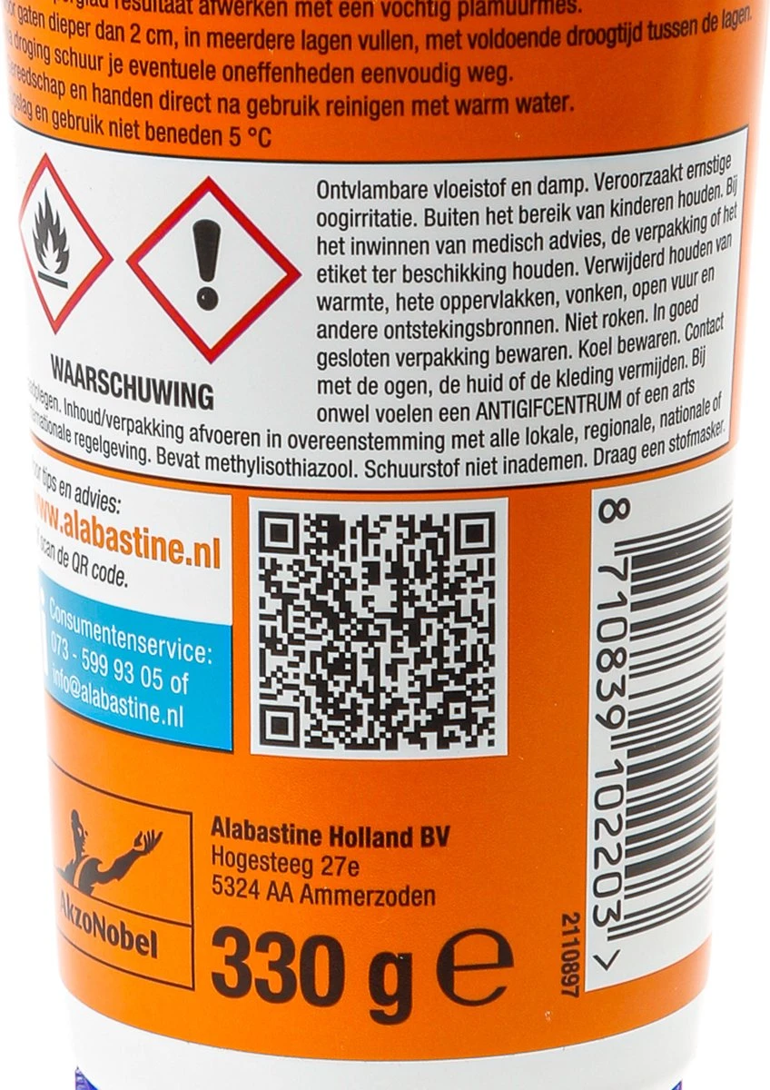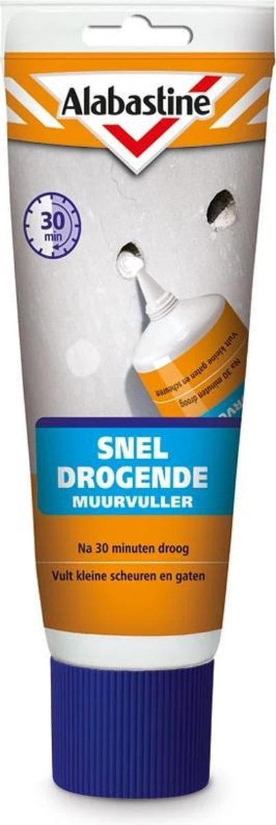 Alabastine Sneldrogende Muurvuller (330 gr) vult snel kleine scheuren en gaten, zoals boor- en spijkergaten. Het hecht perfect op steen, beton, gipsplaten, pleister- en stucwerk. Binnen 15 minuten is dit vulmiddel al droog en je kunt dus snel beginnen met schilderen. Daarnaast is Sneldrogende Muurvuller krimpvrij en goed schuurbaar zodat je een mooie onzichtbare reparatie kunt maken. Na droging is het ook schroef-, spijker- en boorvast.
