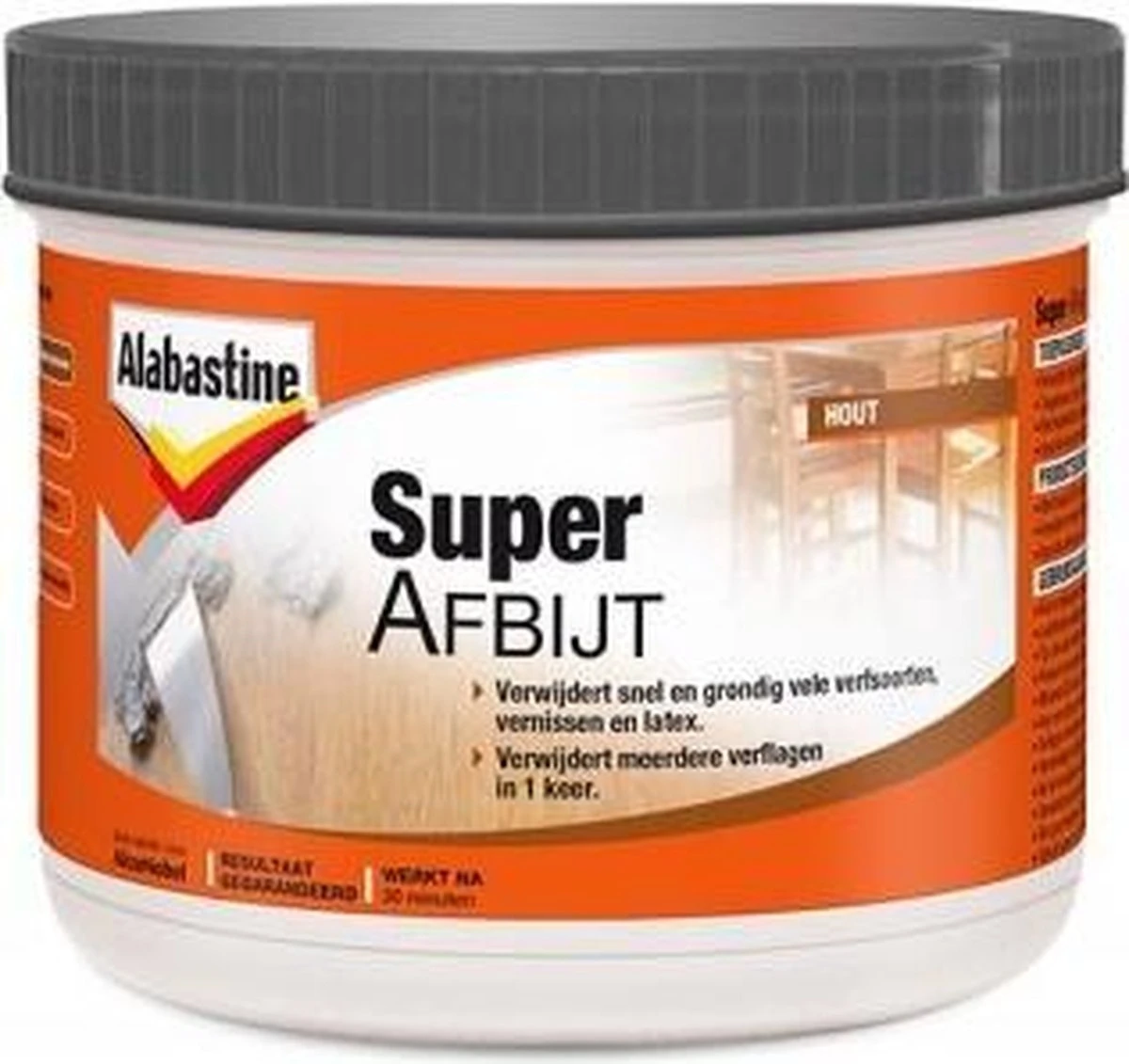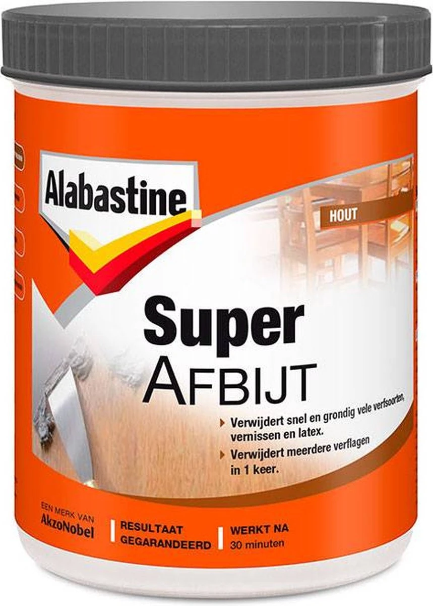 Snelwerkend afbijtmiddel in gelvorm, voor het verwijderen van verven en lakken. Verwijdert meerdere lagen in één keer, tot maximaal 10 verflagen. Inwerktijd 3 tot 20 minuten. Geschikt voor het verwijderen van synthetische, acryl- en nitrocelluloselak, vernis en latex, maar niet geschikt voor verwijderen van 2-componenten lakken en waterkit. Toepasbaar op ondergronden van metaal, steen, beton, pleisterwerk en hout. Afhankelijk van het aantal lagen.