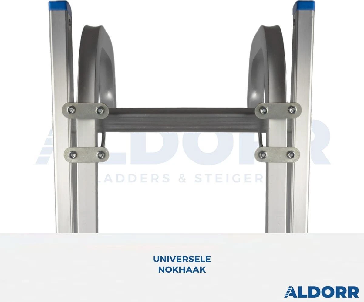 De nokhaak beschikt over 2 wieltjes waarmee u uw ladder makkelijk over uw dak naar boven rolt. Vervolgens kantelt u de ladder waardoor de nokhaak achter de nok haakt. De ladder ligt dan vast en kunt u de ladder veilig beklimmen en/of werken aan het dak.