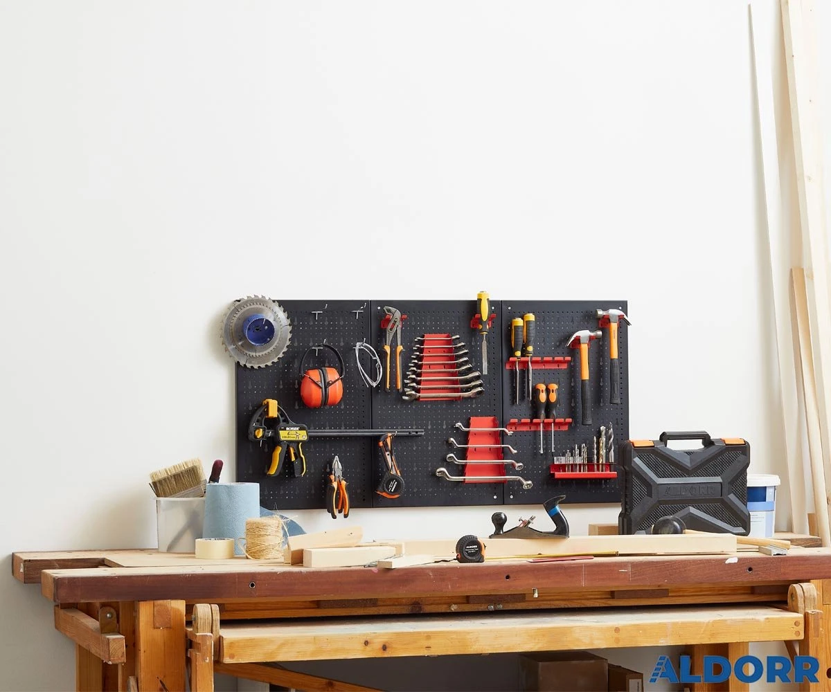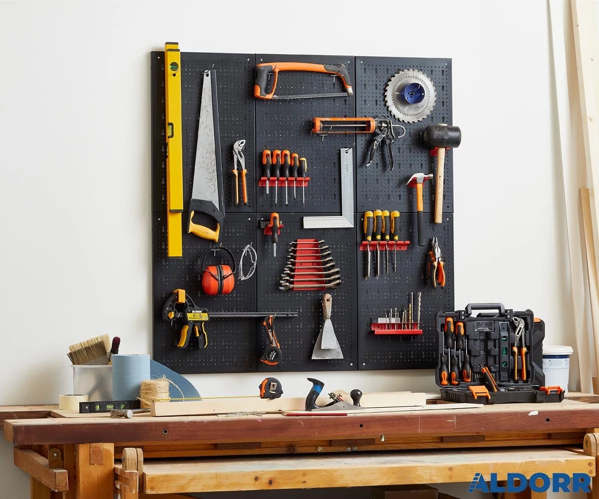 Met deze gereedschapwand sla je al je gereedschap overzichtelijk op. Door de vele bevestigingsmogelijkheden kan je al je gereedschap kwijt. De uitgebreide accessoireset bevat zowel eenvoudige haken als complexe houders voor vork-ringsleutels, schroevendraaiers, hamers en meer. De wand bestaat uit drie losse delen die ieder afzonderlijk gebruikt kunnen worden. Daarnaast wordt een 25-delige gereedschapshouderset meegeleverd. De gereedschapswand is eenvoudig uit te breiden door bijvoorbeeld 6 of 9 panelen op te hangen.