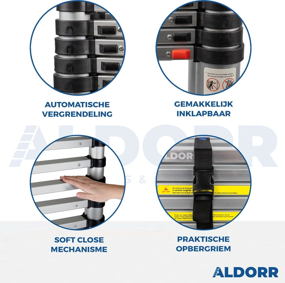 ALDORR heeft een assortiment van ruim 70 verschillende ladders en steigers en is marktleider in Nederland op het gebied van telescoopladders. De belangrijkste succesfactoren zijn innovatiekracht en innovatietempo. Zo brengt ALDORR elk jaar nieuwe producten op de markt van hoge kwaliteit voor een eerlijke prijs. Door direct te verkopen aan de consument zonder tussenkomst van retailers en winkels, zijn ALDORR ladders en steigers gemiddeld 35% voordeliger!
