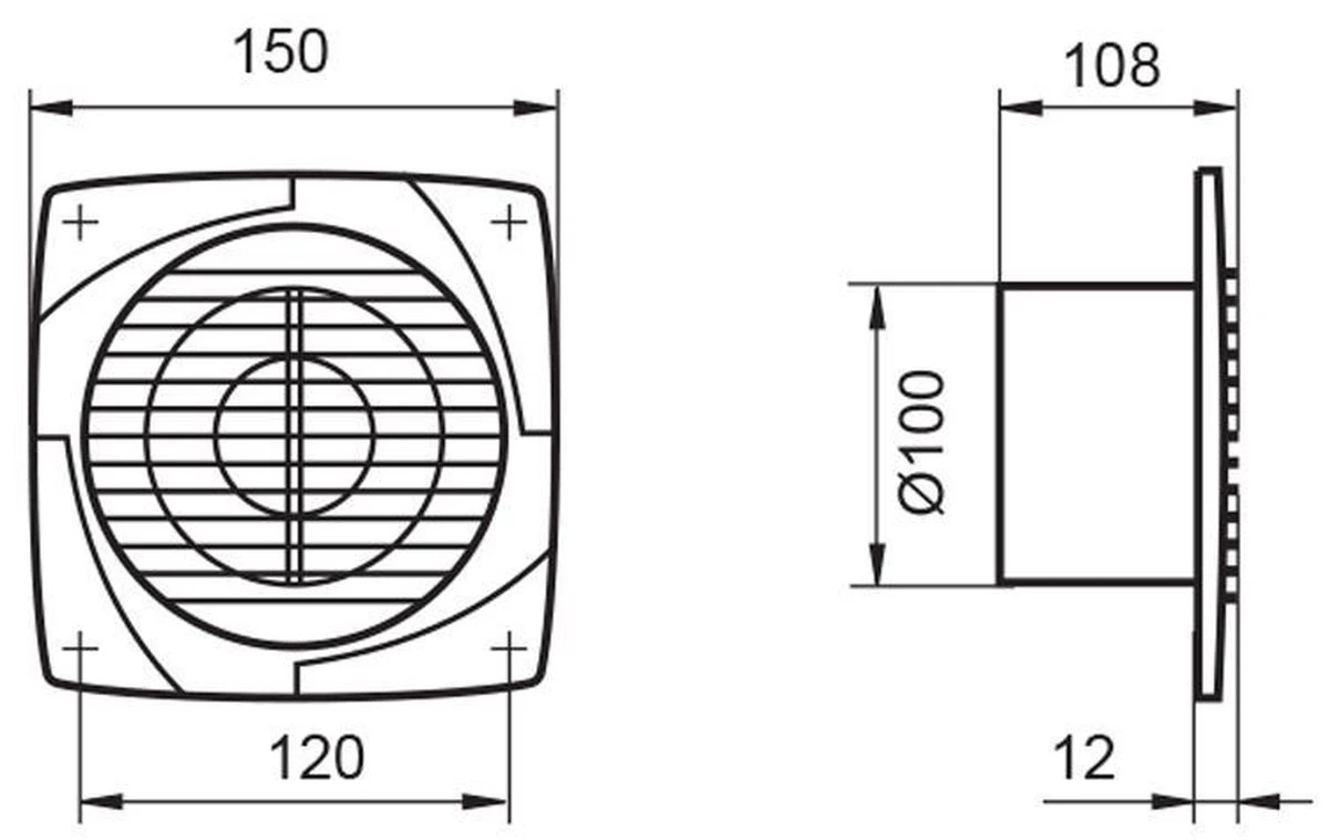 De badkamerventilator is geschikt voor horizontale (plafond) en verticale (wand) plaatsing.