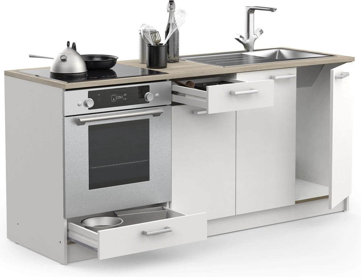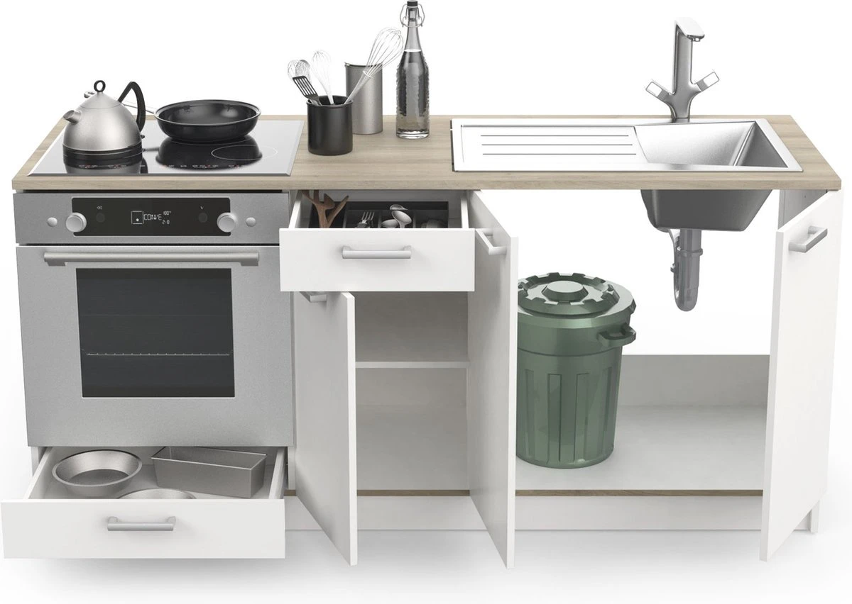 Open/gesloten opbergruimte, ontworpen voor verschillende items: kookplaat, oven, spoelbak (maxi 80 cm breed)