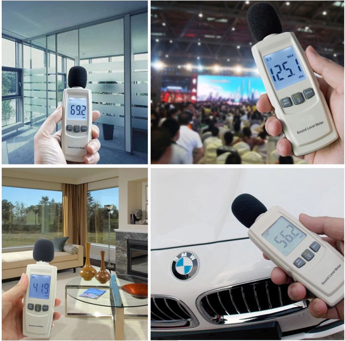 Met de Benetech decibelmeter is het mogelijk om voordelig accurate (tot ±1.5 dB nauwkeurig) geluidsniveaumetingen te verrichten. Deze compacte geluidsmeter heeft een meetbereik van 30-130 dB, een frequentie bereik van 31.5Hz ~ 8KHz en een A detectiemodus/correctieschaal wat overeenkomt met het menselijke gehoor. Daarnaast heeft het apparaat een Fast (125 ms) en slow (1 sec) aanspreektijd. De Benetech geluidsmeter kan naast het actuele geluidsniveau ook min/max waarden weergeven, heeft een Hold-functie en een visueel alarm (backlight gaat knipperen als het geluidsniveau over vooraf ingestelde waarde komt). De geluidsniveaumeter heeft tevens een backlight, een auto off functie (om de batterij te besparen).