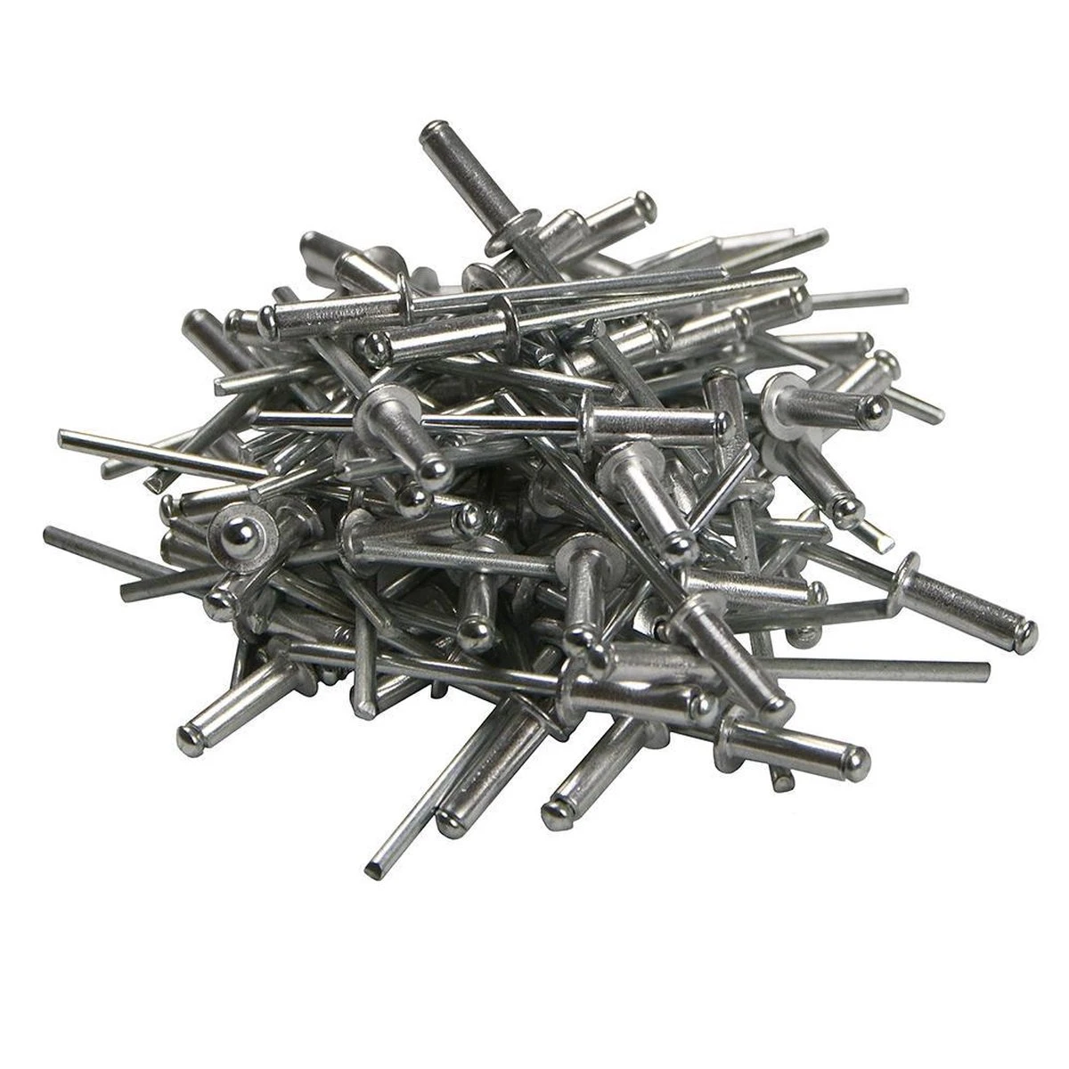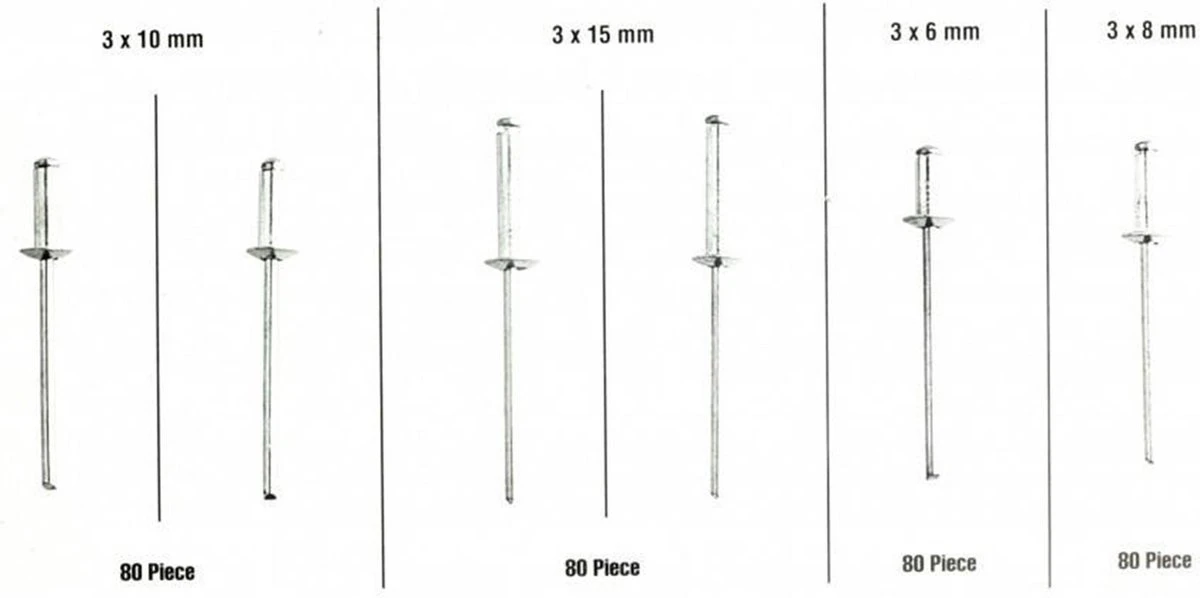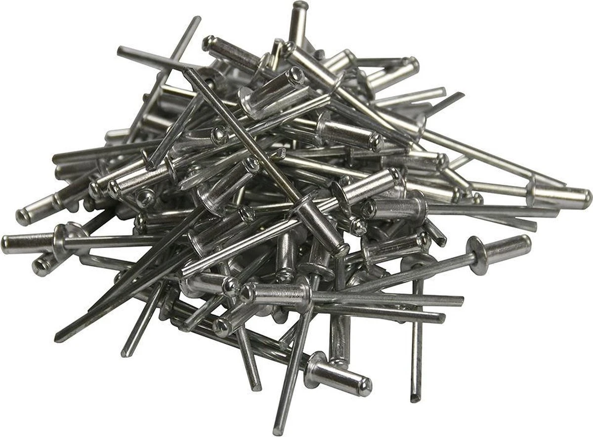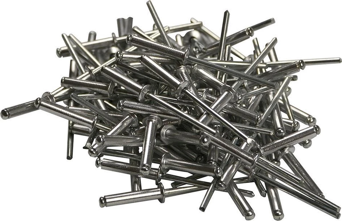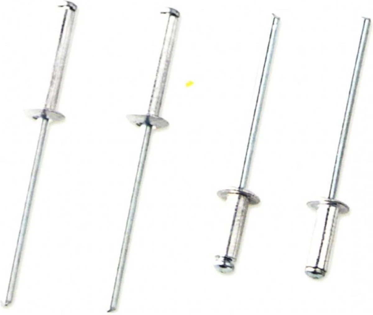 De popnagels zijn gemaakt van gehard staal en voorzien van een platte ronde kop gemaakt van aluminium.