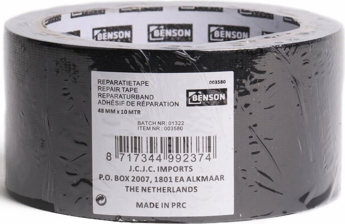 De Benson reparatietape is een uniek reparatiemiddel waarmee u scheuren en gaten in praktisch alle materialen eenvoudig dicht. Het is ongekend sterk en elastisch. De reparatietape biedt geen tijdelijke maar een permanente oplossing.