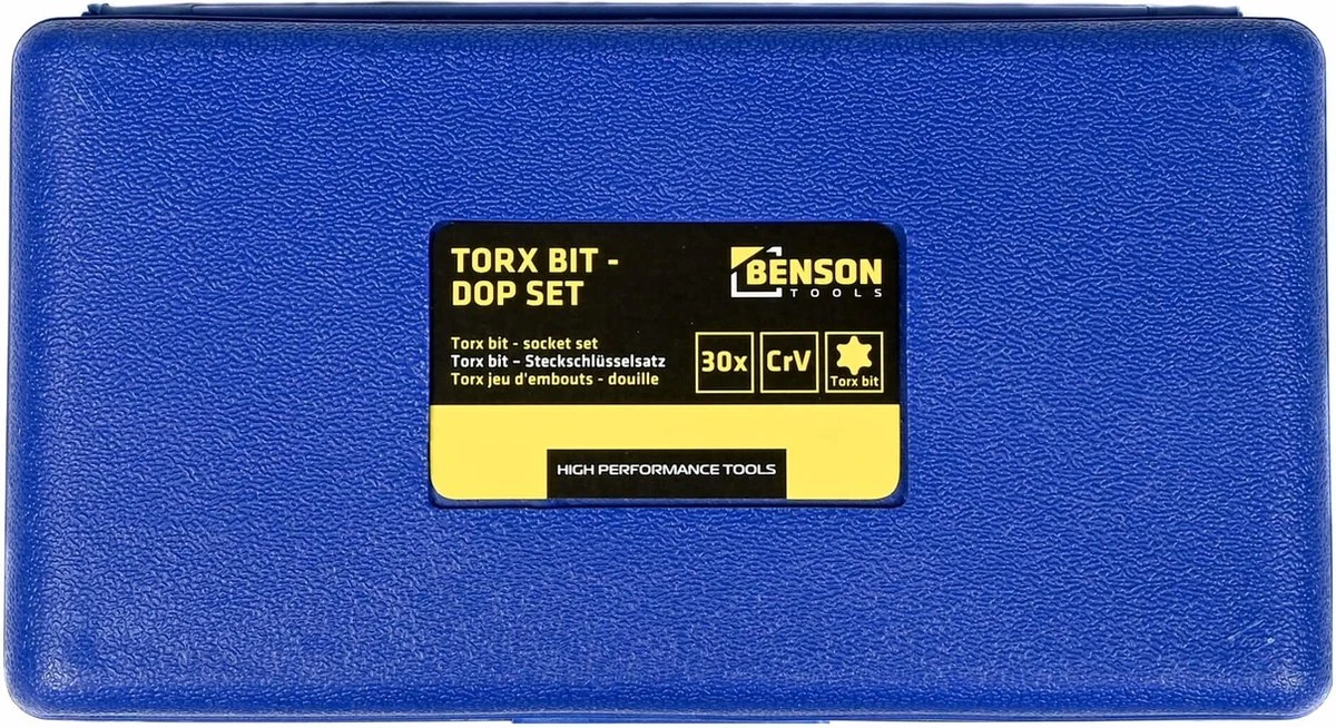 Deze uitgebreide torx-, bit- en doppen set is een zeer praktisch, in een plastic opbergdoos. De gereedschapskist is voorzien van een 30-delige dopsleutel set. De bits zijn gemaakt van hoogwaardig chroom vanadium staal. De doppen zijn ideaal voor klusjesmannen en monteurs.