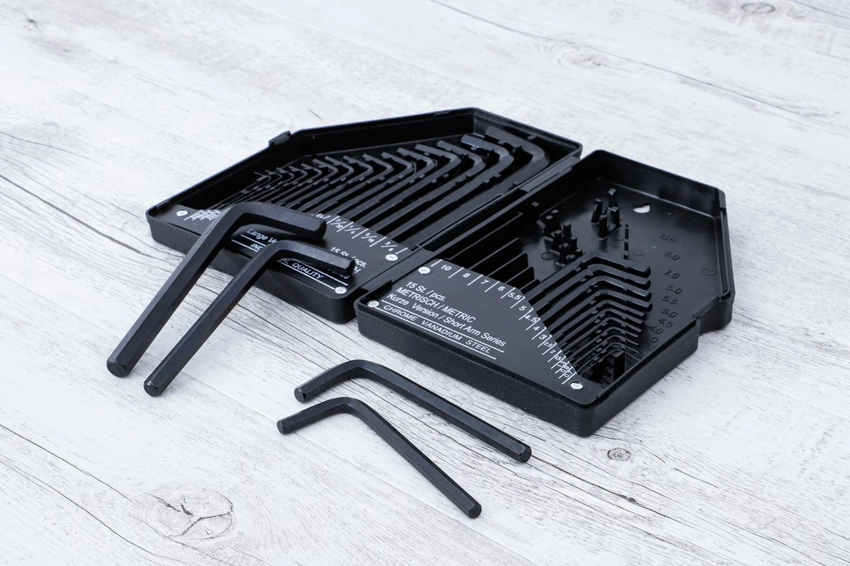 - Materiaal inbussleutels: Chroom vanadium. Zwarte finish
