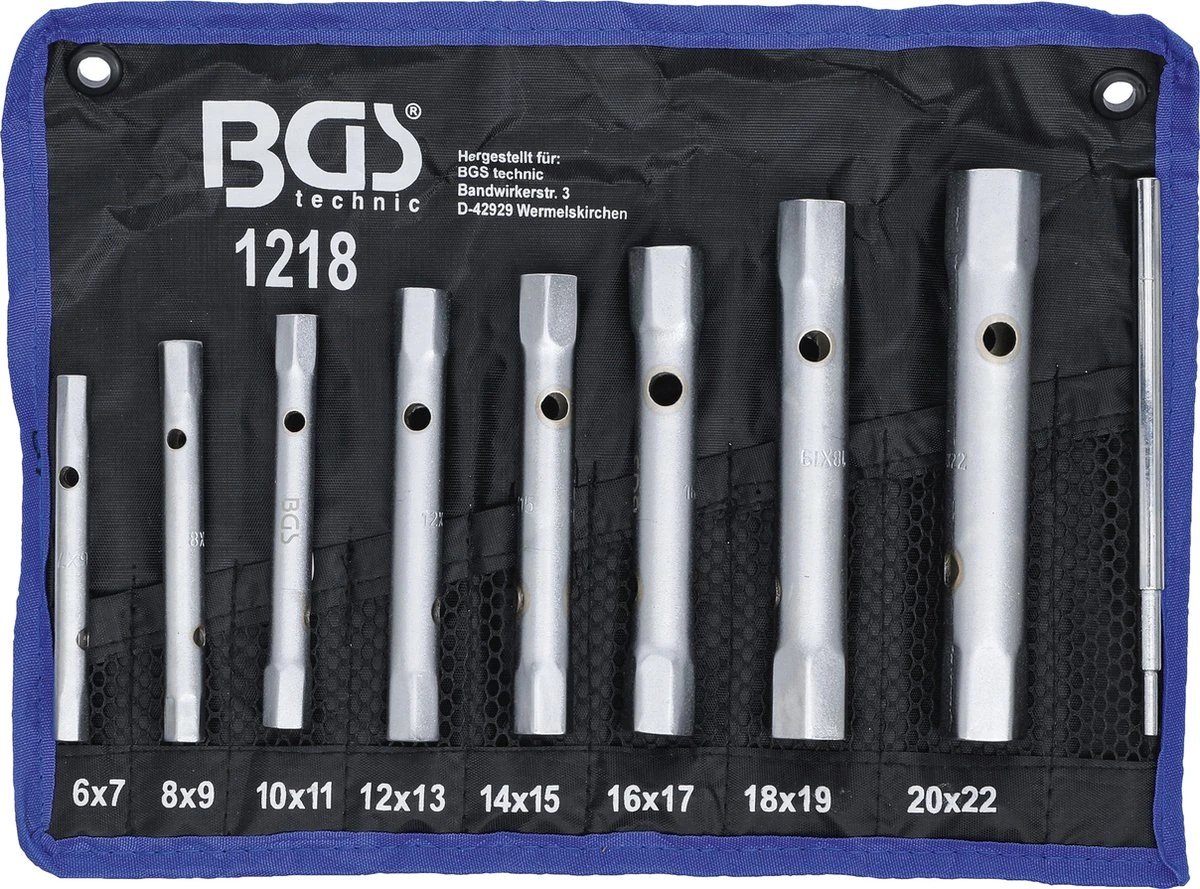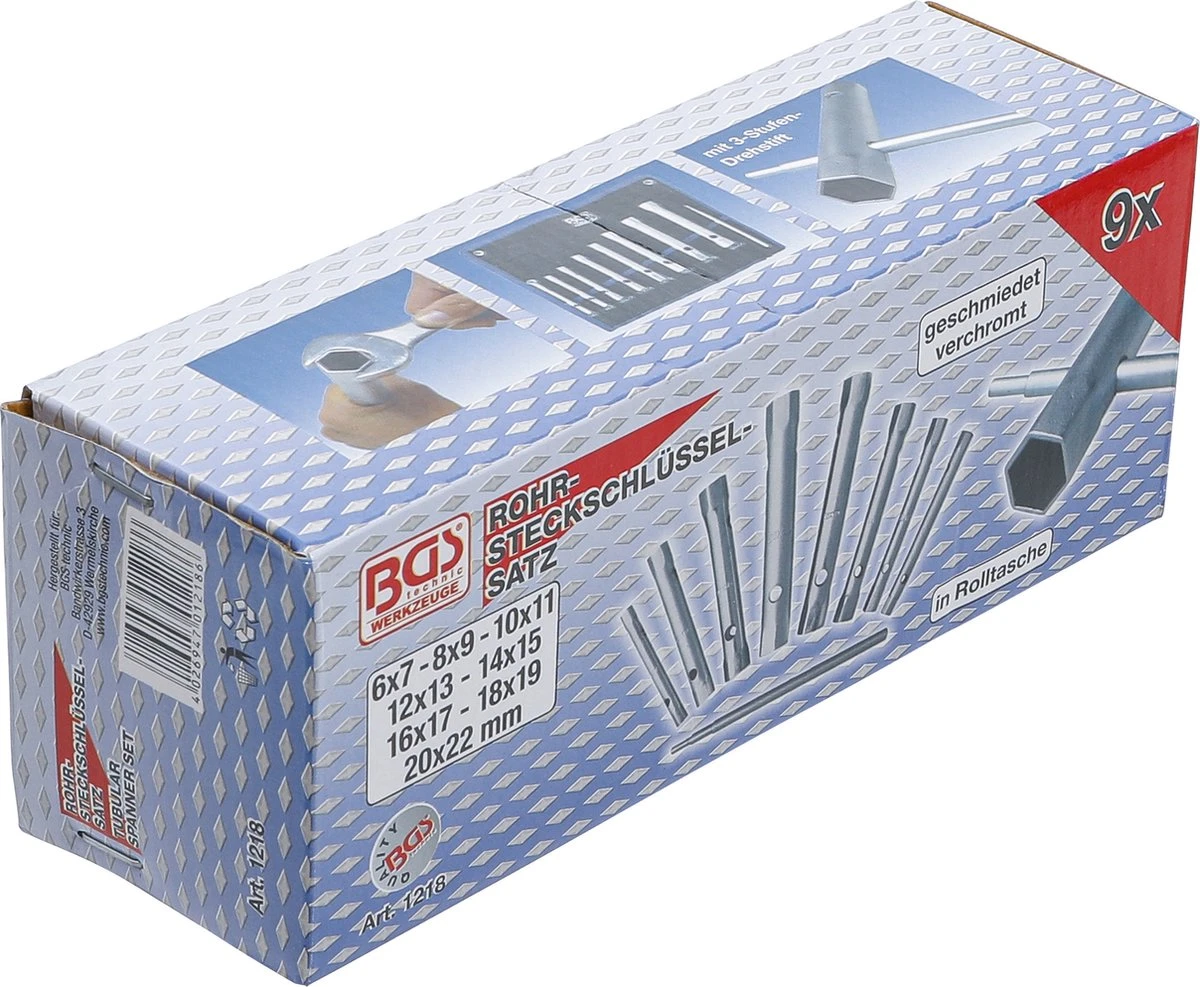 BGS technic Pijpsleutelset | 6 x 7 – 20 x 22 mm | 9-dlg (1218) oppervlakte:mat verchroomdGewicht:0.96 kgBreedte:8 cmHoogte:8 cmLengte:21 cm