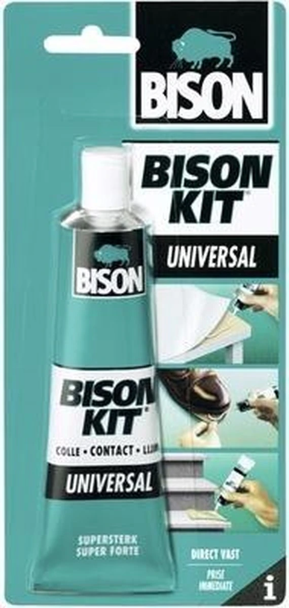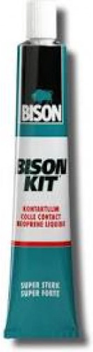 Bison kit contactlijm – tube 100 ml – 1301108| Afname Per: 1 Stuk| EAN: 8710439008714 | Merk: Bison | Korte beschrijving: Super sterke, universele contactlijm op basis van neopreenrubber. Voor ontelbare reparaties en klussen die direct vast moeten zitten. Uitermate geschikt voor materialen onder spanning.