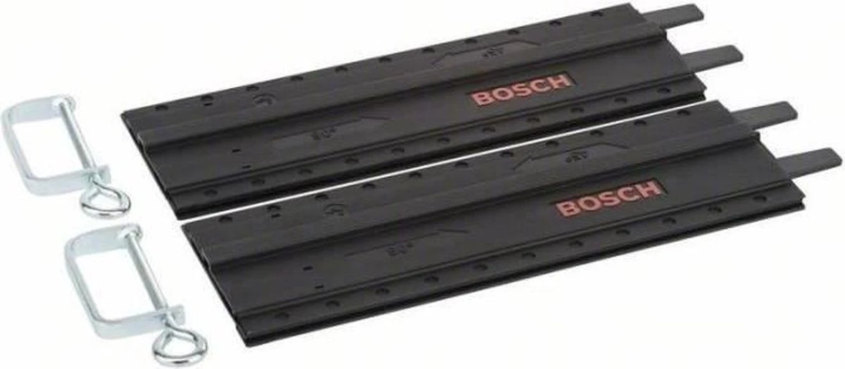 De Bosch twee-delige geleiderail, gemaakt van kunststof, maakt het nog eenvoudiger om met een cirkelzaag te zagen. Grote voorwerpen kunnen door een geleiderail makkelijker en nauwkeuriger gezaagd worden. De afmeting van deze geleiderail is 350 mm per rail.