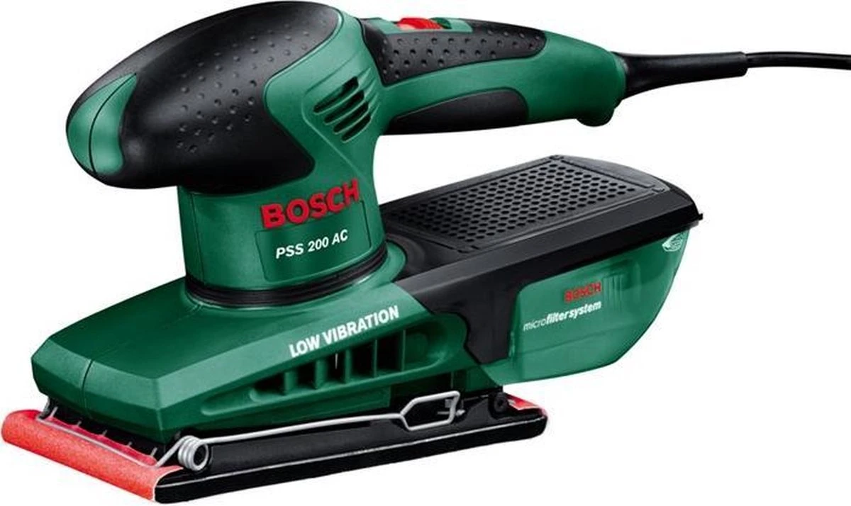 De Bosch PSS 200 AC vlakschuurmachine is de ideale oplossing voor de fijnste afwerking en snel resultaat met de krachtige 200 watt motor en een schuuroppervlak van 92×182 mm. Het grote voordeel van deze vlakschuurmachine is het schuurbladspansysteem omdat je schuurpapier snel en gemakkelijk kan vervangen met behulp van de spanhendel. Met deze Bosch vlakschuurmachine kan je zuiver werken dankzij Bosch-microfiltersysteem want het ingebouwde stofzuigelement zuigt het stof direct in de bijgeleverde microfilterbox. De Bosch PSS 200 AC vlakschuurmachine wordt daarnaast geleverd met 1 schuurblad en een kunststof koffer.