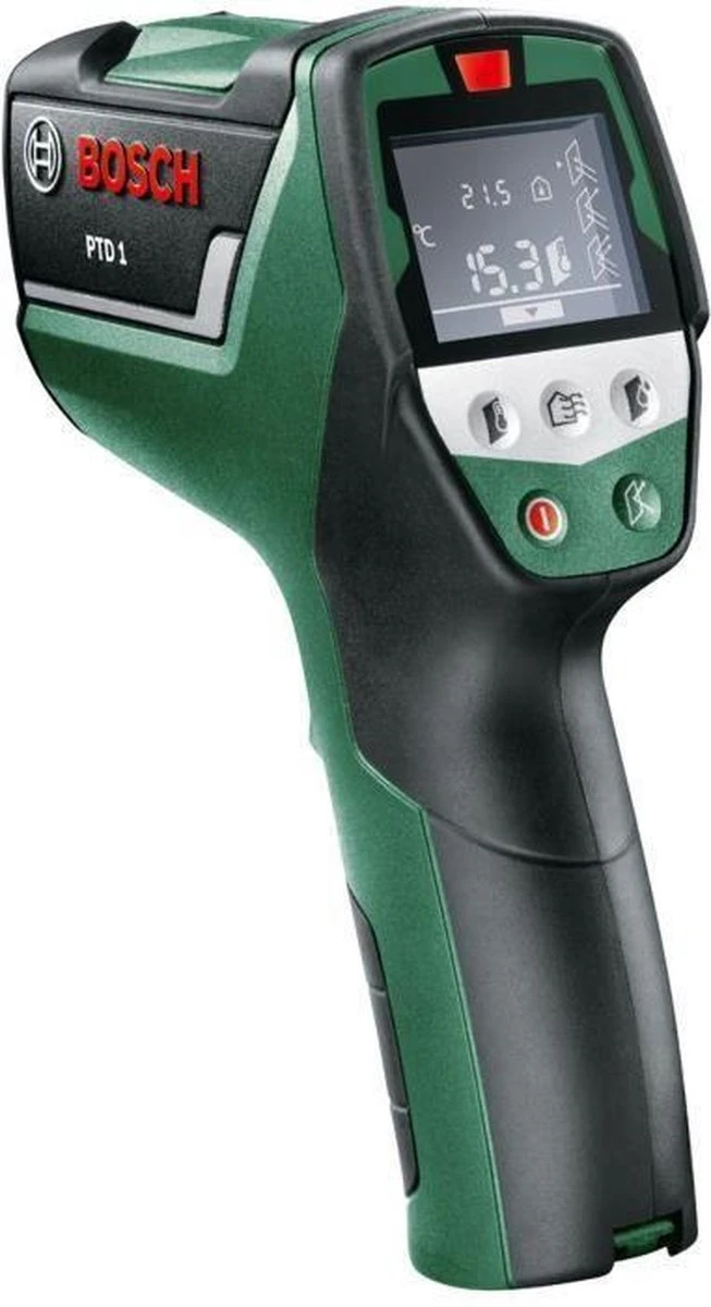 Gezonder wonen en energie besparen dankzij de PTD 1 thermodetector. Hiermee meet u oppervlaktetemperaturen, kamertemperaturen en de luchtvochtigheid. De meetresultaten worden automatisch geïnterpreteerd. Zo spoort u snel warmtebruggen en schimmelgevoelige plaatsen op. De meetresultaten worden weergegeven door een driekleurige LED volgens het verkeerslichtprincipe: rood, geel en groen. U kunt kiezen uit drie meetmodi voor nog nauwkeurigere resultaten. Ook kunt u schakelen tussen een individuele stand of een continustand voor spotmetingen of het scannen van objecten. Meet de temperatuur van radiatoren en vloerverwarmingen of spoor niet of slecht geïsoleerde plekken bij ramen en deuren op. Creëer een gezondere leefomgeving door muren en badkamers op schimmelgevoelige plaatsen te controleren.