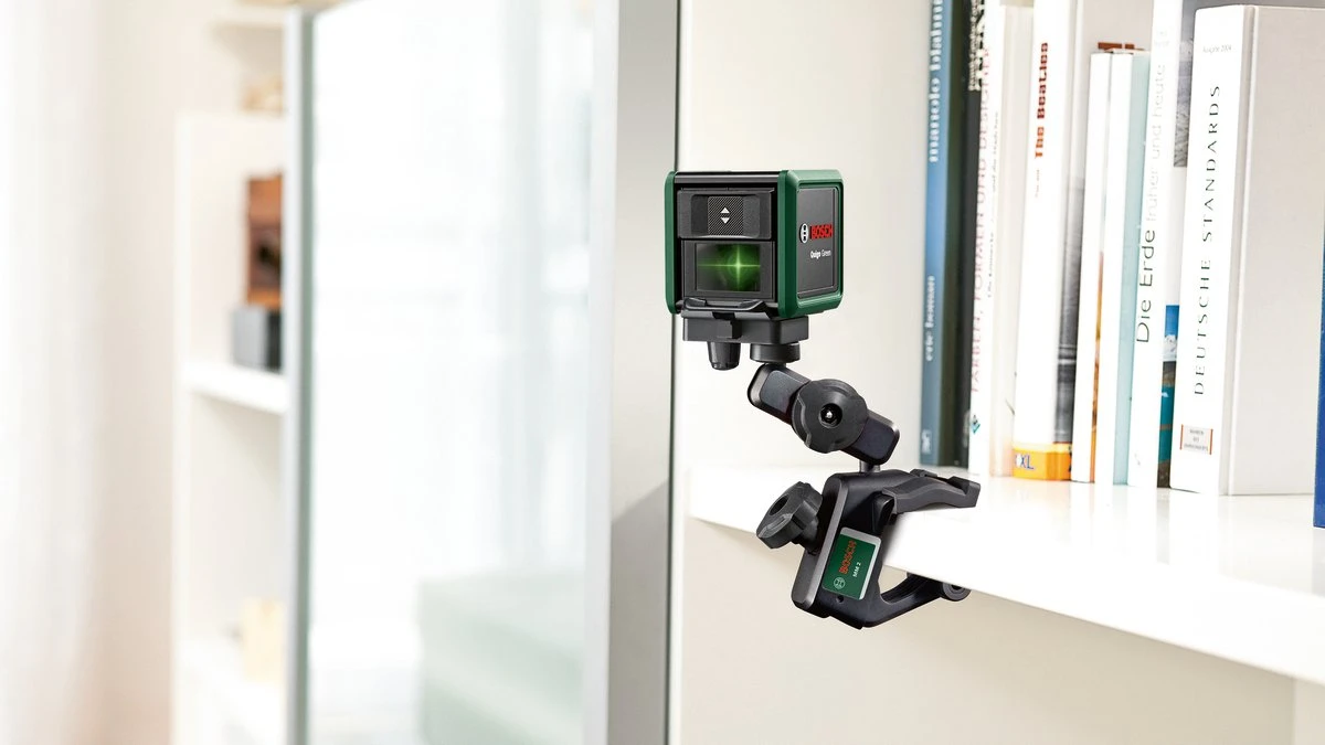 Word helemaal groen met de nieuwe generatie Bosch Quigo green kruislijnlaser die een zeer goede zichtbaarheid en eenvoudig hanteren levert voor doe-het-zelfklussen. Met de intense, groene kruislaserlijnen is de Quigo green de perfecte uitlijnoplossing voor werken bij heel fel licht. Deze levert een verbeterde nauwkeurigheid van +/- 0,6 mm/m en een werkbereik van max. 12 m. Quigo green maakt primair gebruik van gerecycled materiaal bij behuizing, accessoires en verpakking en heeft een geoptimaliseerd energieverbruik. Voor nog meer gemak wordt deze veelzijdige kruislijnlaser geleverd met een universele klem MM 2 en een adapterplaat voor eenvoudig monteren. Beide zijn ook gemaakt van gerecyclede kunststof. De Quigo green nivelleert zichzelf binnen een bereik van +/- 4° om een rechte uitlijning van spiegels, schappen of tegels te waarborgen.