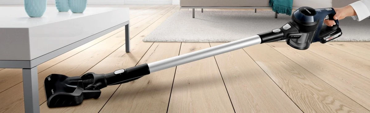 De Bosch BBS611PCK Serie 6 is de meest compacte snoerloze steelstofzuiger van Bosch. Deze Bosch steelstofzuiger heeft een geïntegreerde kruimelzuiger. Hierdoor zijn ook moeilijke plekken bereikbaar. Op een volle accu en in de laagste stand heeft deze steelstofzuiger een gebruiksduur van 30 minuten. Is de stofzuiger leeg? Binnen 4 uur is deze weer volledig opgeladen.