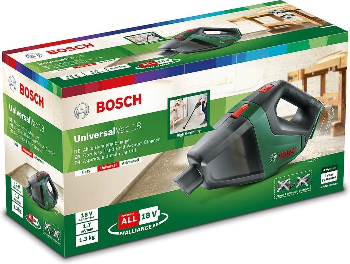- Bosch Accuhandstofzuiger UniversalVac 18 (18 V accu en lader niet meegeleverd)