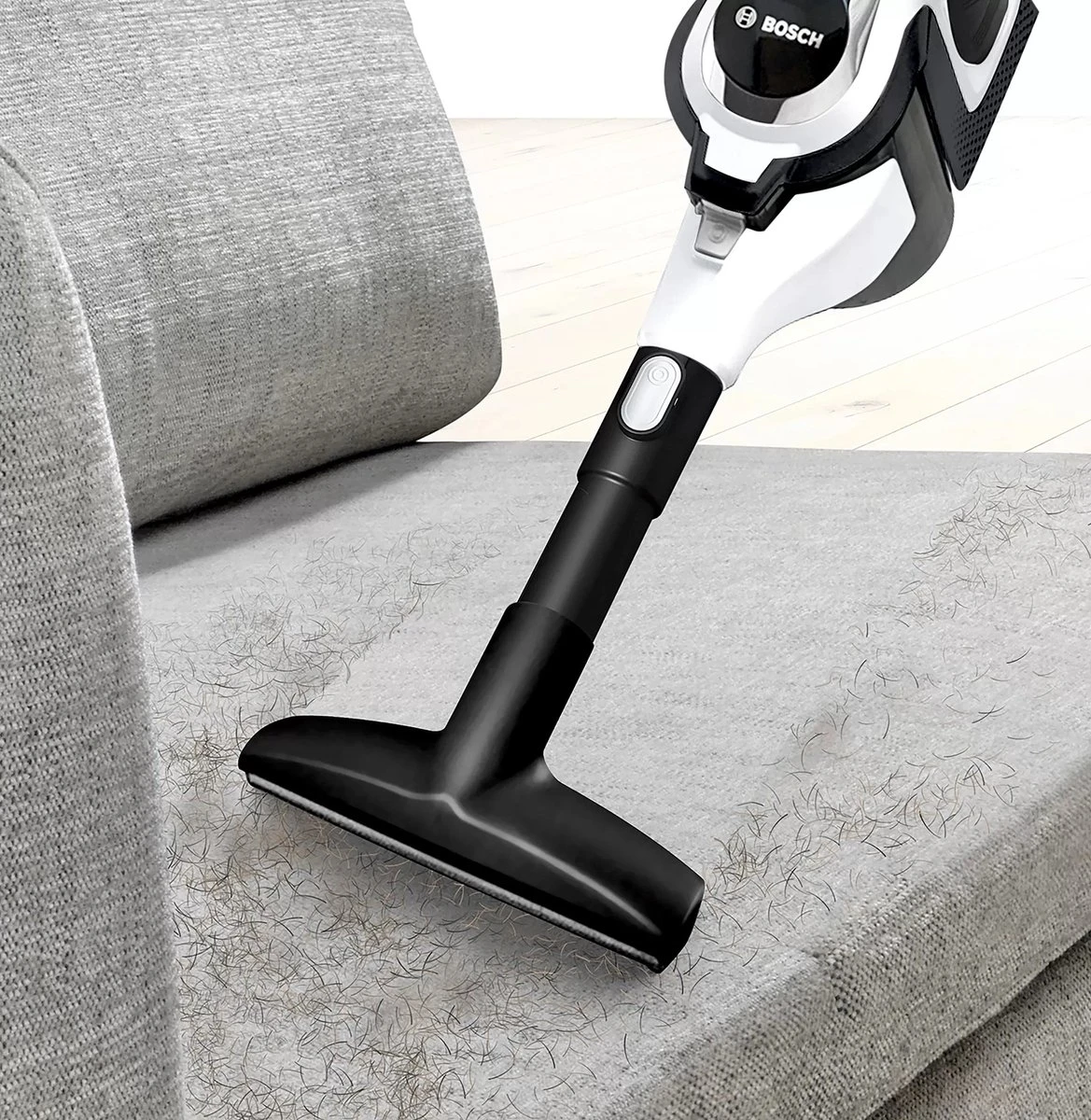 De Bosch Unlimited BBS812AM Serie 8 steelstofzuiger is het nieuwste model van Bosch en heeft vele handige functionaliteiten. Deze steelstofzuiger wordt geleverd met 2 accu’s, die sneller opladen dan dat ze op gaan, zodat je eindeloos kan doorzuigen. Op de laagste stand gaan de accu’s wel tot 60 minuten mee. De Bosch Unlimited BBS812AM kan makkelijk gebruikt worden als kruimelzuiger. Bovendien worden er standaard verschillende mondstukken geleverd, zodat je op alles voorbereid bent. Ontdek hier deze flexibele krachtpatser.