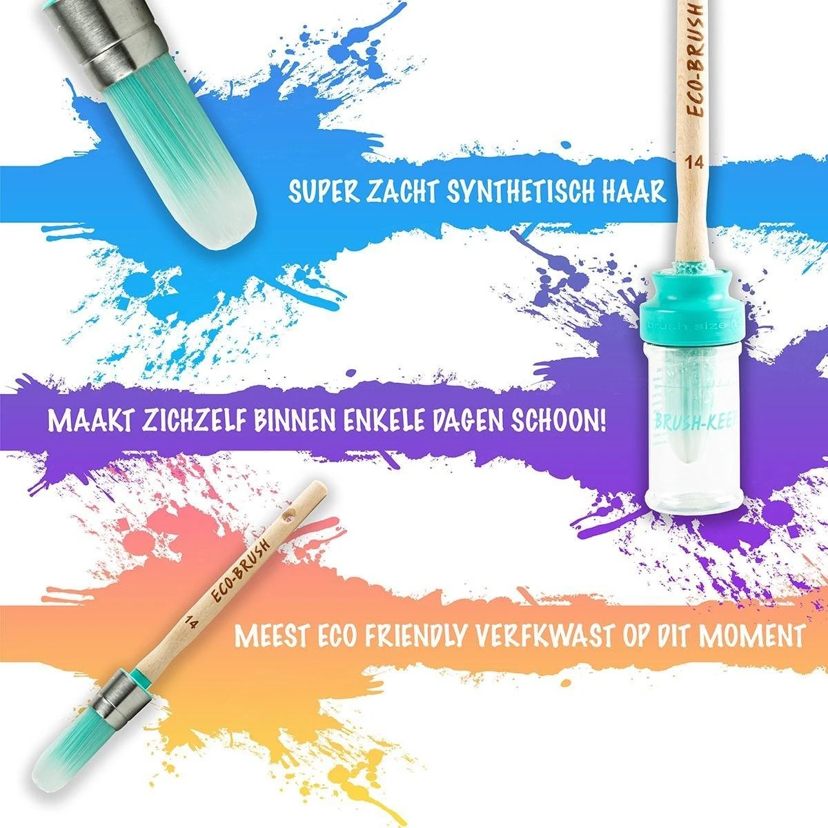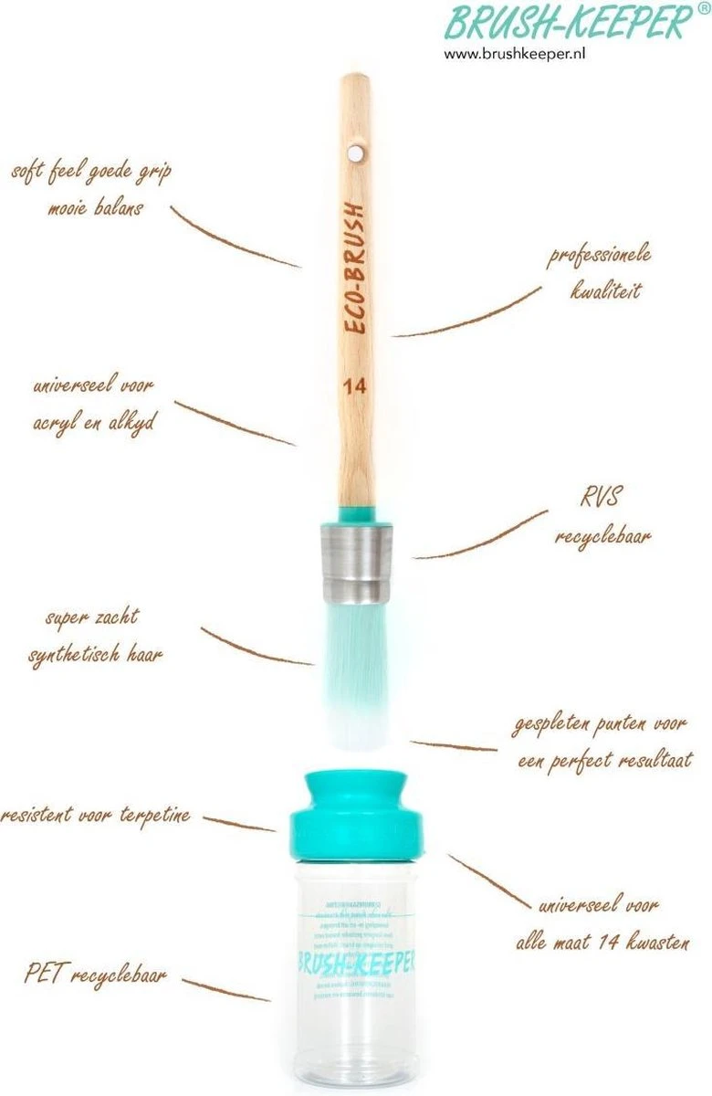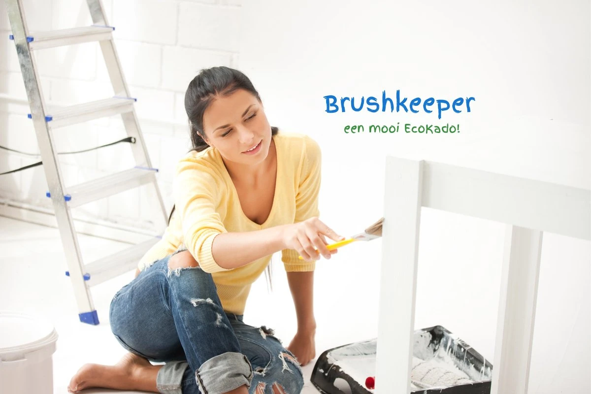 “BrushKeeper met Ecobrush, dé meest handige en duurzame verfkwast met houder, maat 14, acryl & alkyd, zelfreinigend. Mooi EcoKado!