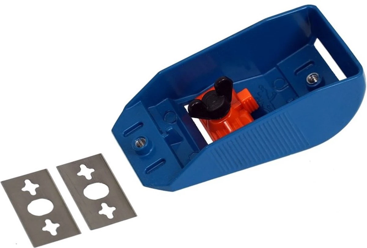 Metaal, met 2-zijdig snijdend beitelmesje. Geschikt voor vlak-, bol-, en holschaven, steken en krabben. Voor bewerken van hout, board, plastic, leer, rubber etc.