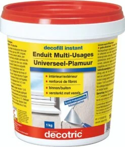 decofill instant Universeel-Plamuur met het plamuurmes in een laagdikte van max. 5 mm opbrengen. De plamuur droogt zonder krimpen of scheuren tussen 1 tot 6 uur en dit afhankelijk van de laagdikte. Oneffenheden kunnen vochtig glad en vlak gestreken worden. Daaropvolgende afwerking pas na volledige droging van de opgebrachte lagen uitvoeren. Na volledige droging kan de plamuur geschuurd en afgewerkt worden. Voor afwerking in behang of verf is het gebruik van een primer niet noodzakelijk.