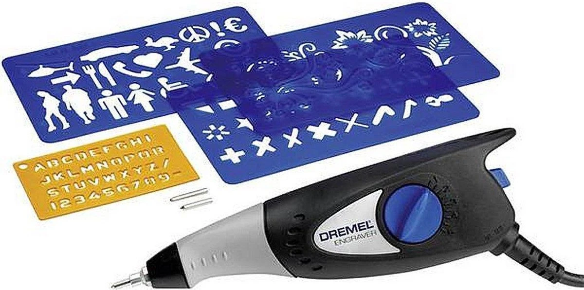De Dremel 290 graveerpen met variabele diepteregeling klaart al je graveerklussen met gemak en maximale precisie. De set bevat ook enkele speciale graveersjablonen, waarmee je nauwkeurig speciale vormen kan graveren in elk materiaal dat je wilt, zoals glas, keramiek, metaal, kunststof, hout en leer. Op deze manier kunt u eenvoudig mooie gepersonaliseerde cadeaus maken zoals decoratieve houten plankjes, kandelaars, fotolijsten en champagneglassen. De set wordt tevens geleverd met 2 vervangbare hardmetalen graveerpunten en 1 diamanten graveerpunt.