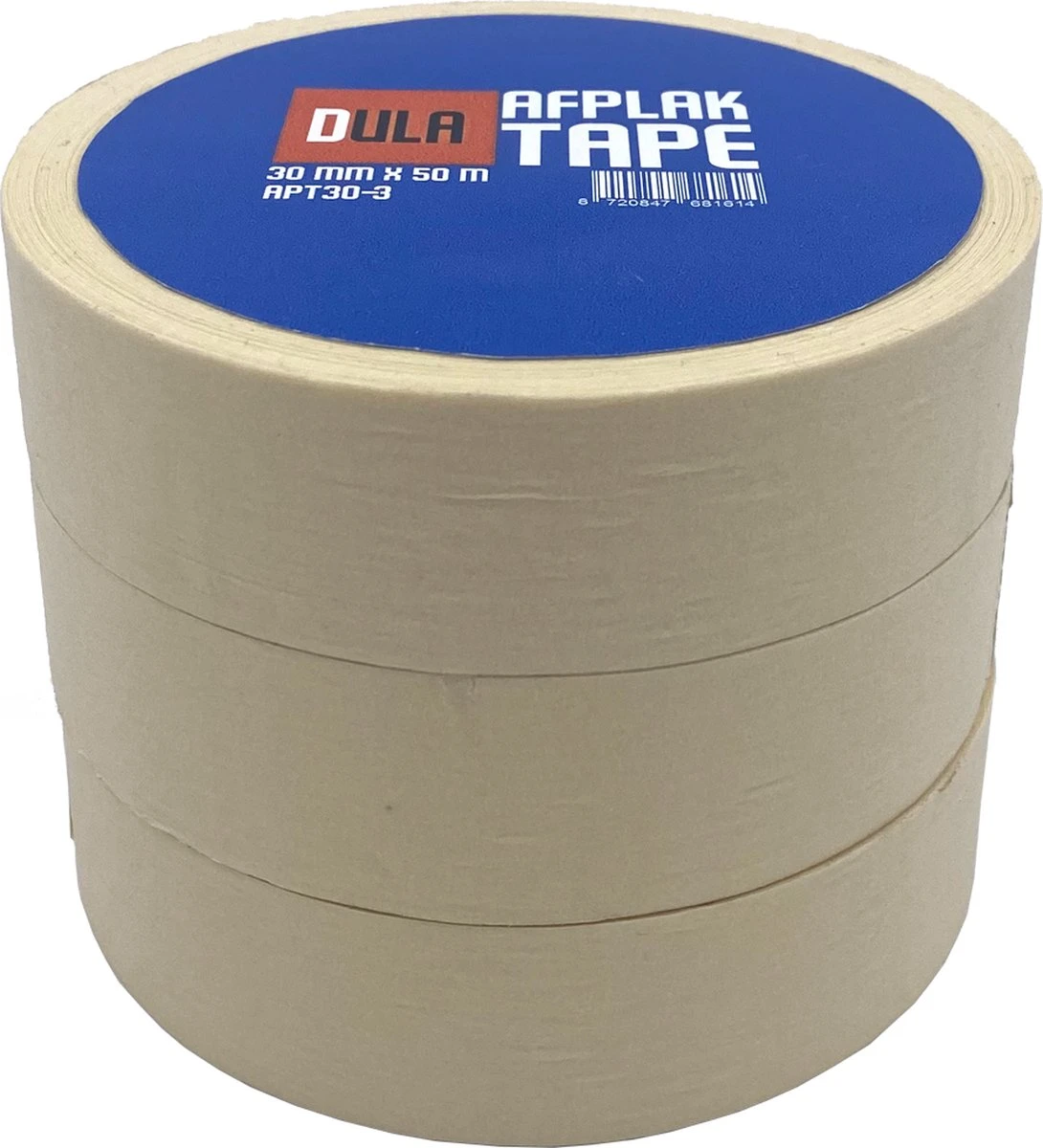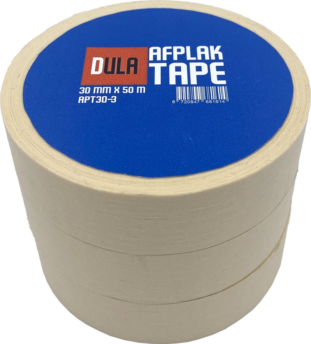 Gaat u verven, verpakken of markeren dan is de DULA afplaktape perfect voor jou.De DULA afplaktape plakt goed op diverse ondergronden en is makkelijk te verwijderen zonder achterlating van resten, waardoor het makkelijk is in gebruik.