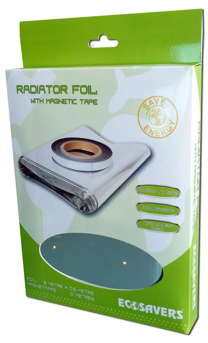 EcoSavers Radiatorfolie zorgt ervoor dat u de warmte die van uw radiator afkomt optimaal gebruikt en zo dus energie bespaart. U plakt de radiatorfolie achterop de radiator, dus niet op de muur. De warmte van de radiator wordt weerkaatst door de folie en lekt daardoor niet via de muur naar buiten.