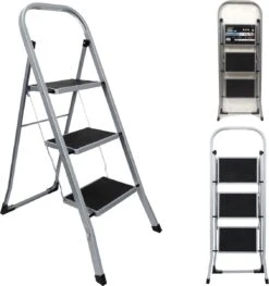 Opzoek naar een Multi functioneel trapje, hier onze huishoudtrapje. Onze huishoud trapje is gemakkelijk om op te klappen. Elke traptreden is 30X20 cm. Geschikt voor de binnen als voor buiten gebruik, met 3 treden. Kenmerken :