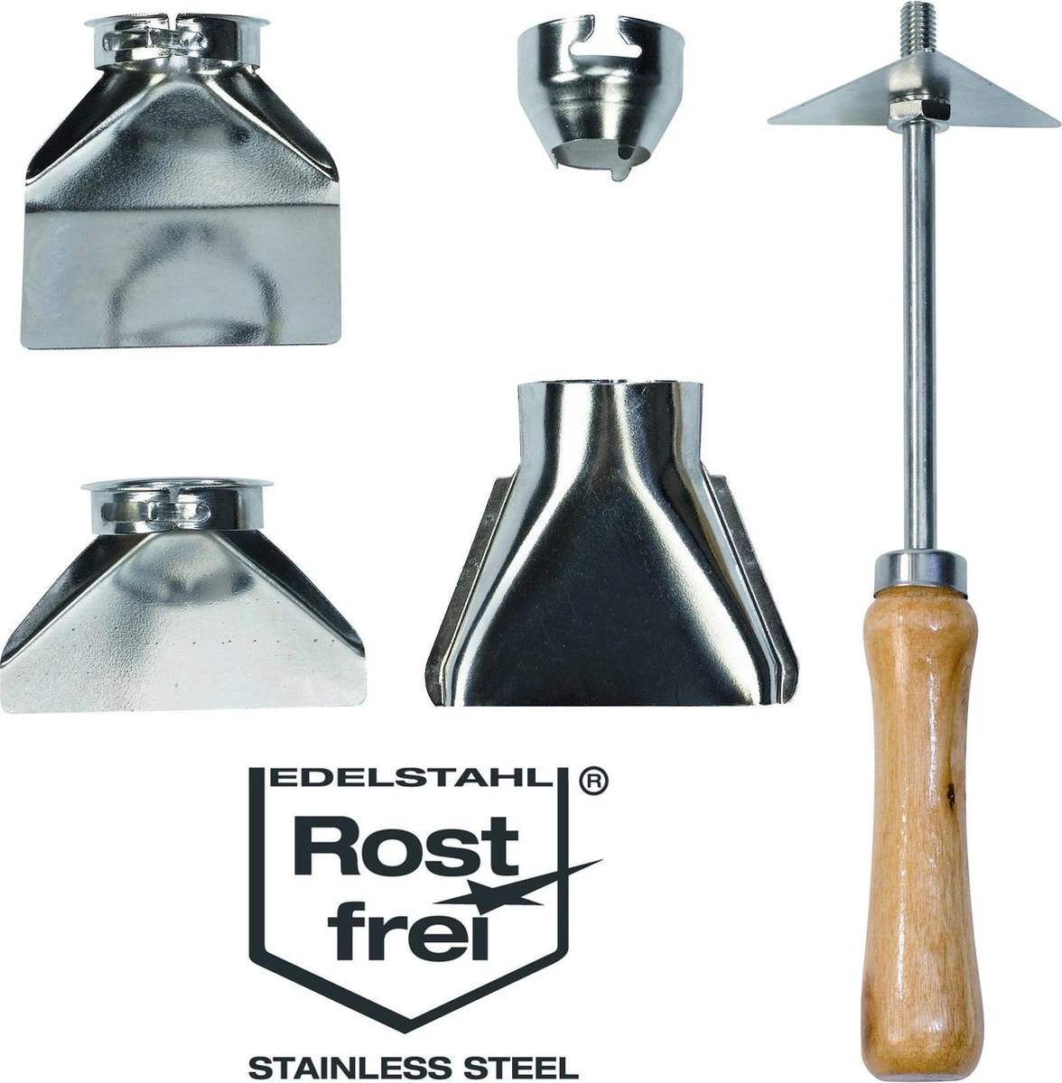 Met de eveneens meegeleverde verfkrabber kunnen oppervlakten vakkundig van lak- en verfresten worden ontdaan. Voor maximale veiligheid tijdens het werk kan de machine, beveiligd tegen omvallen, worden neergezet.