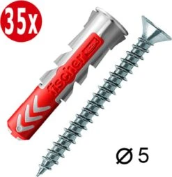 35x Universele Fischer DUOPOWER plug 5×25 incl kruiskop Tornitrex schroef (PZ2) van 3,5x35mm in handige herafsluitbare gripzak.