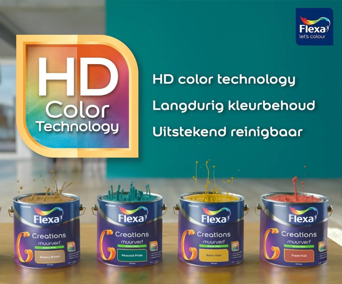 Flexa Creations Muurverf kun je tenminste één jaar op een vorstvrije plaats bewaren in een ongeopende verpakking.