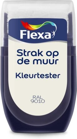 De verf in de kleurtester is een matte, vochtregulerende, goed dekkende, waterverdunbare muurverf van Flexa.