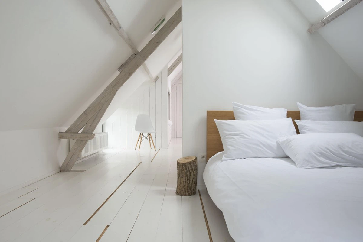 Als de voorstrijk goed gedroogd is, kun je beginnen met de eerste laag Flexa Powerdek Muren en Plafonds. Voor een mooi dekkend en egaal resultaat kun je het beste twee lagen aanbrengen. Begin ook hier bij de randen met een kwast en schilder daarna de grote vlakken met een vachtroller. Breng 2 tot 3 banen aan in verticale richting, verdeel deze vervolgens in horizontale richting en rol tot slot in één richting verticaal na. De droogtijd tussen de lagen is ongeveer 6 uur bij 20 graden. Reinig na afloop je gereedschap met water. Breng eventuele verfresten bij een verzamelpunt voor klein chemisch afval.