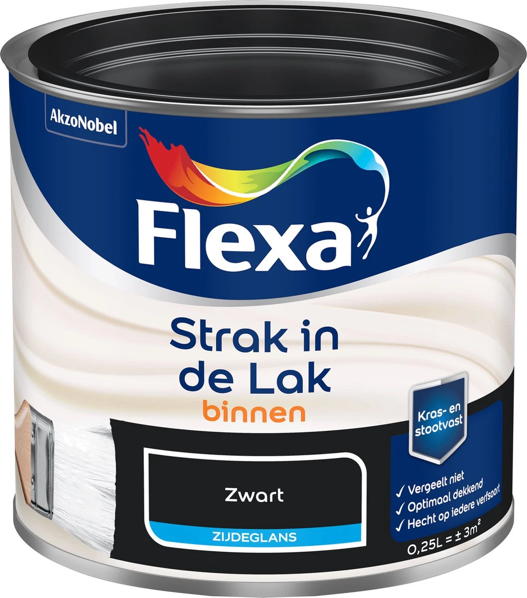 Flexa Strak In De Lak – Watergedragen – Zijdeglans – Zwart – 250 Ml