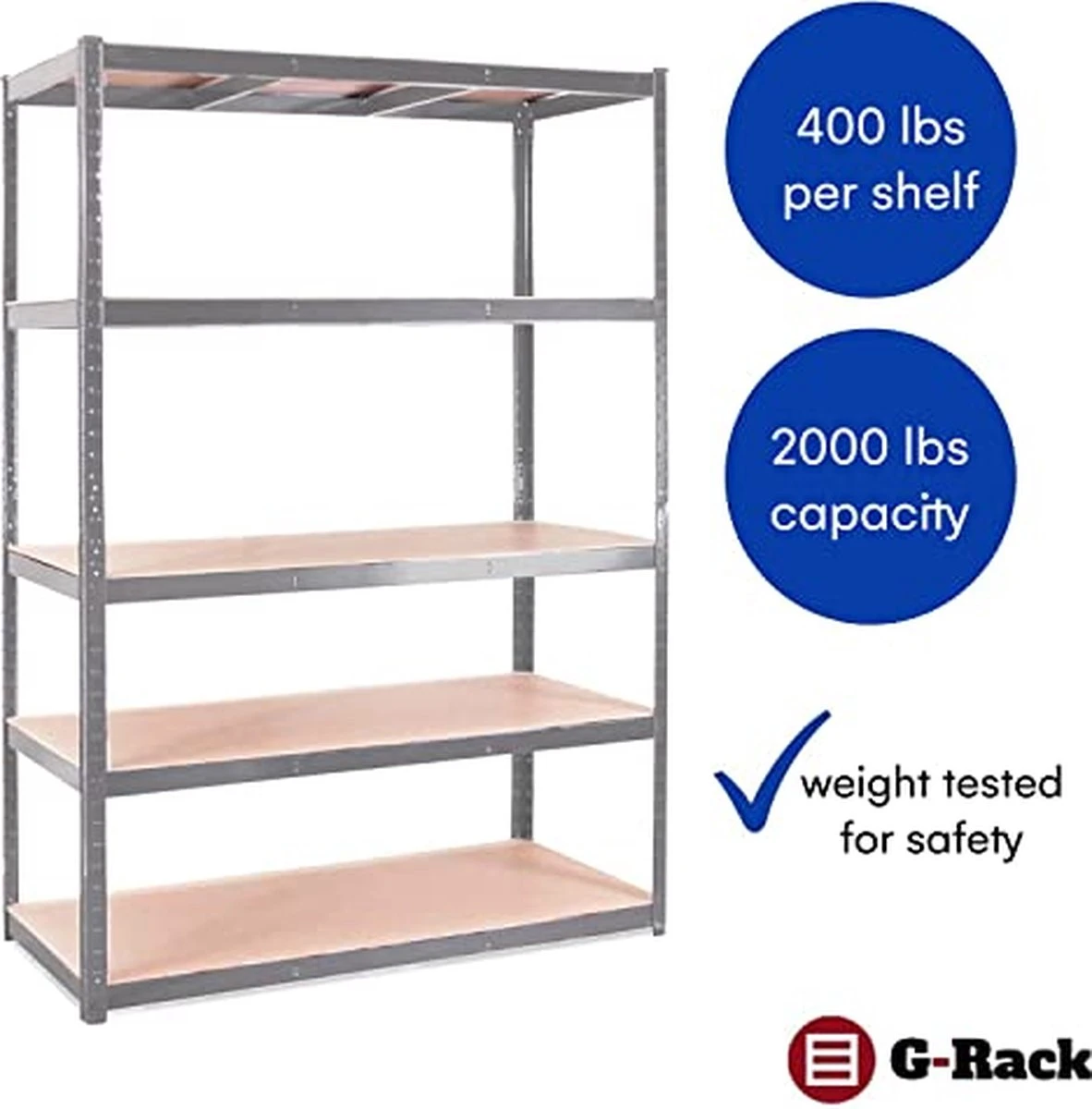 G-Rack Rekken Voor Zwaar Gebruik, 1 Grijze Opslagplank 5 Vakken – Voor Kelder, Werkplaats, Berging, Garage – Metaal I 180 X 120 X 60 Cm I 175 Kg Belasting Per Plank (totaal 875 Kg) I 5 Jaar Garantie