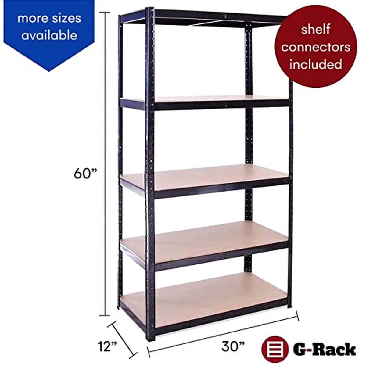 G-Rack Rekken Voor Zwaar Gebruik, 1 Zwart Opbergrek 5 Vakken – Voor Kelder, Werkplaats, Opslagruimte, Garage – Metaal I 150 X 75 X 30 Cm I 175 Kg Belasting Per Rek (totaal 875 Kg) I 5 Jaar Garantie