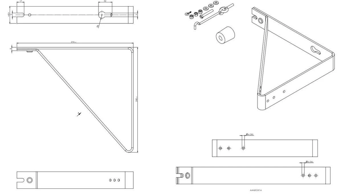Deuropvangbeugel haaks compleet 275x250x330 40×4 TV