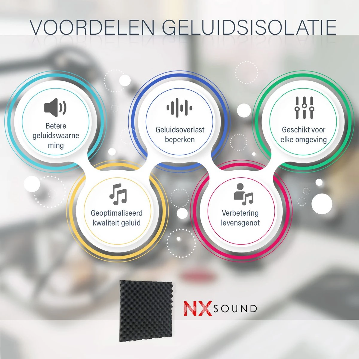 Heeft u last van een gehorige ruimte? Echo’s in de kamer? Of heeft u simpelweg behoefte aan verbetering in kwaliteit van het geluid? Dan zijn geluidspanelen van NX Sound de oplossing voor u! Met deze akoestische panelen kunt u het geluid in uw ruimte niet alleen dempen maar ook scherper horen.