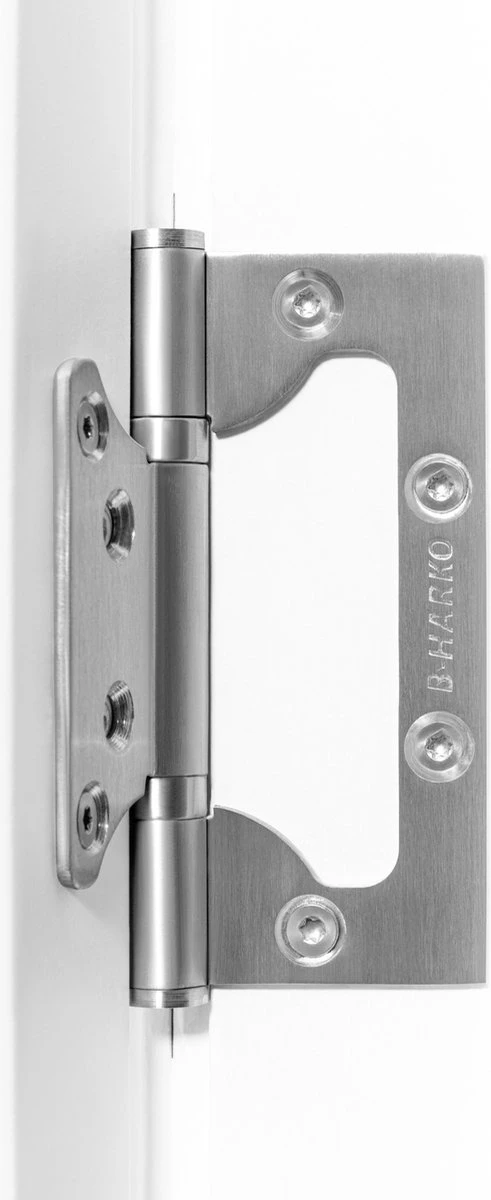Bent u op zoek naar mooie deurscharnieren als particulier of proffesional? Dan hebben wij de oplossing voor u beschikbaar. Met deze set kunt u zonder freeswerk deuren hangen als een expert. Omdat de scharnieren in elkaar vallen en niet op elkaar zoals bij ouderwetse scharnieren, hoeft u de deur en het kozijn niet te bewerken om een strakke en evenwijdige naad te krijgen aan de hangkant van de deur.