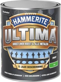 Hammerite Ultima Metaallak is een beschermende premium metaallak voor buiten die 12 jaar bescherming biedt. Deze hoogwaardige metaallak is geschikt om direct aan te brengen op alle metalen. Dit betekent dat Hammerite Ultima Metaallak zonder primer of grondverf direct op alle metalen en over geroeste delen kan worden geschilderd.