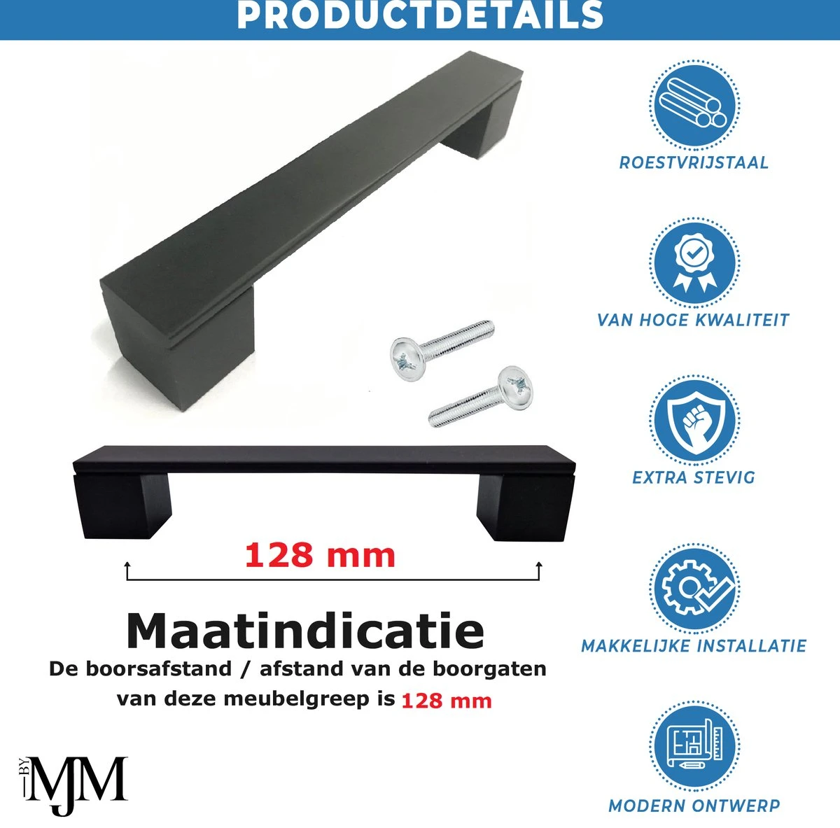 Boorafstand 128 mm (Afstand tussen de gaatjes vanuit het midden gemeten)