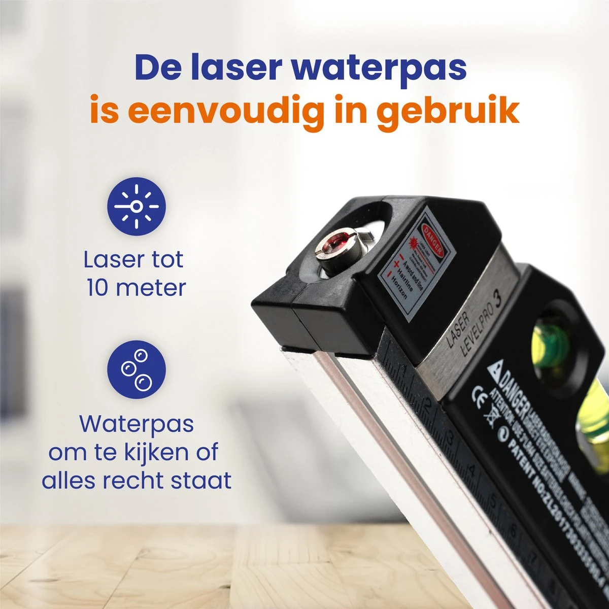 - Keuze uit 3 laser vormen (horizontaal, verticaal, kruis)