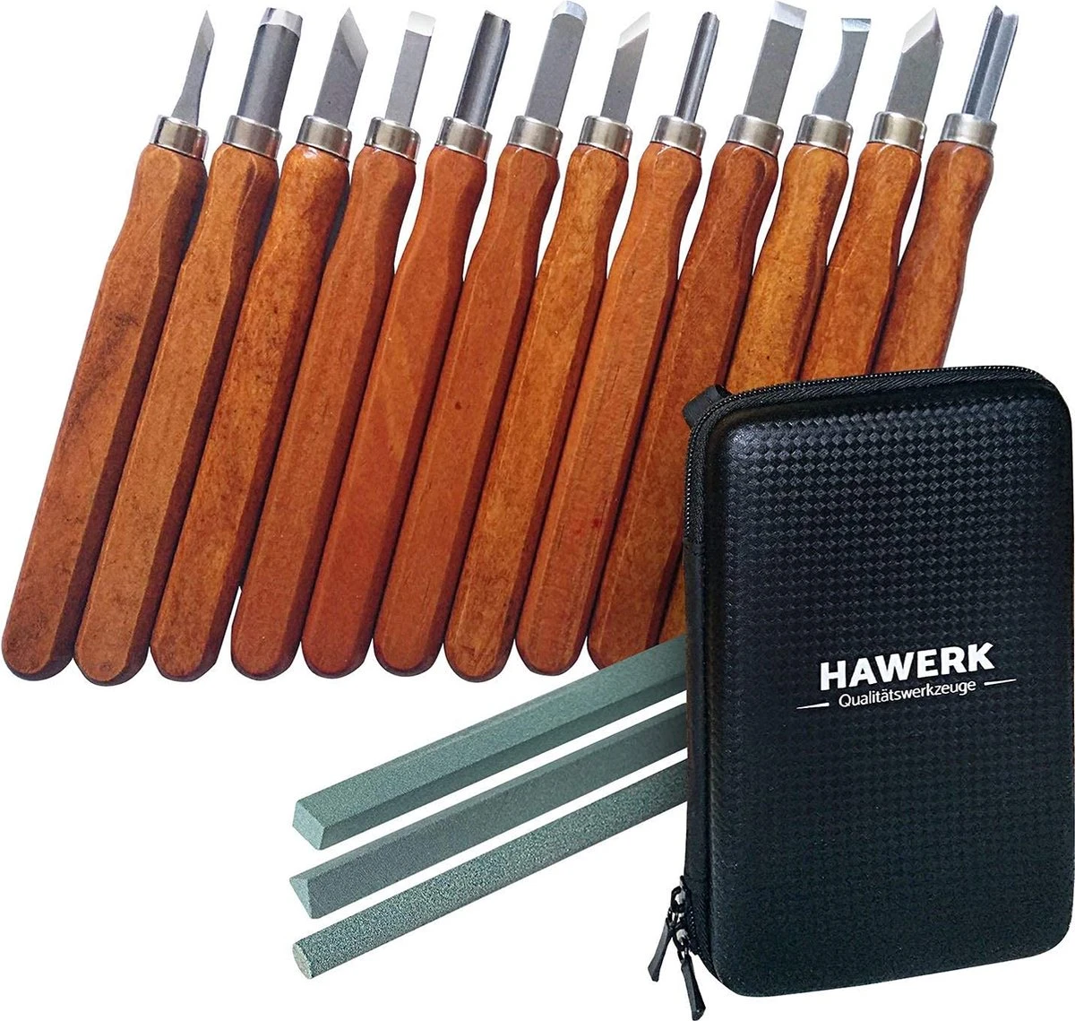 - Hoogwaardige kwaliteit: elegante houtsnijgereedschapsset met snijmes voor het opbergen en 3 slijpstenen van Hawerk. Omdat je voor het snijden gereedschap nodig hebt, waarop je kunt vertrouwen