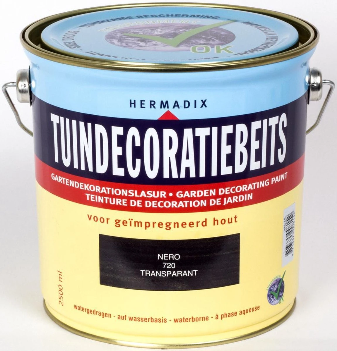Bij reeds bestaande lagen anders dan Hermadix Tuindecoratiebeits wordt geadviseerd om Hermadix Houtdecor verfbeits te gebruiken.